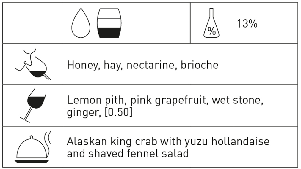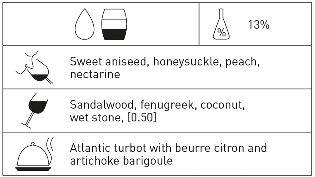 Pale lemon hue. Majestic, towering nose highlighting the enormous potential quality in this part of the world and proving the wisdom of those who planted vineyards here many centuries ago. Notes of honey, hay, lemon pith, pink grapefruit, wet stone, cinnamon, ginger, brioche, nectarine on the nose; this just about falls off the back of the palate, such is its length and unctuousness. Piercing acidity helps keep it in balance, and there is a wealth of fruit that will continue to develop in complexity. The finish is lingering, driven equally by stone and citrus fruit but supported by subtle oak. A wine to sip and savour for many years to come. 2028-2035–MP