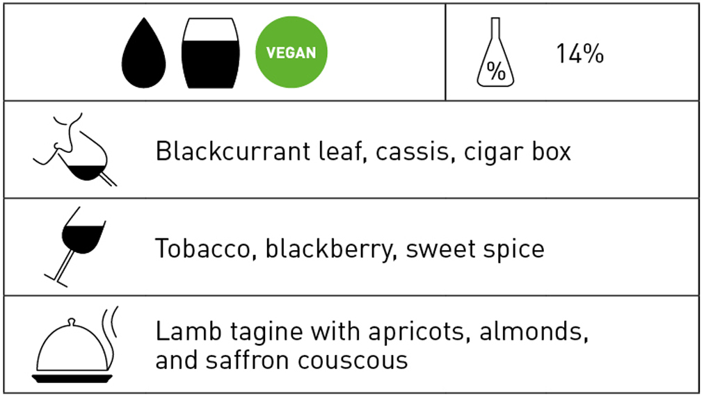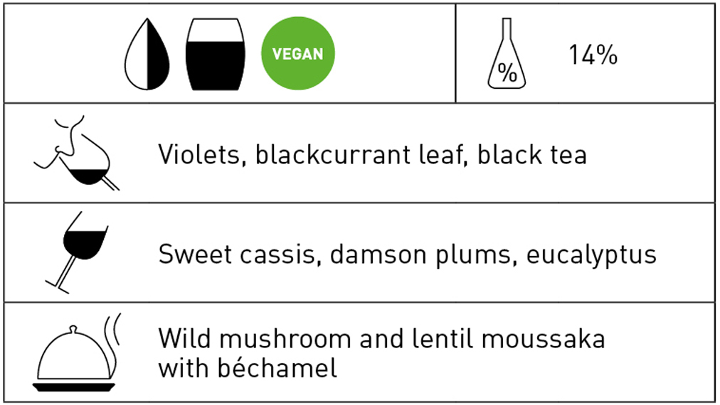 A youthful wine with loads of primary dark fruit character – sweet cassis and damson plums – along with violets, blackcurrant leaf and some eucalyptus. The tannins are polished but exert a gentle grip on the palate; the finish is long and bright. 2026-2034–NH
